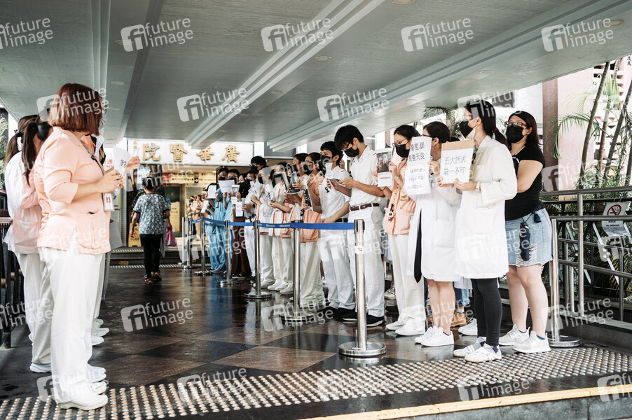 Unfangreiche Streiks und Protestaktionen in Hongkong. Hier streiken die Angestellten des Queen Elizabeth Hospital. Hongkong, 02.09.2019