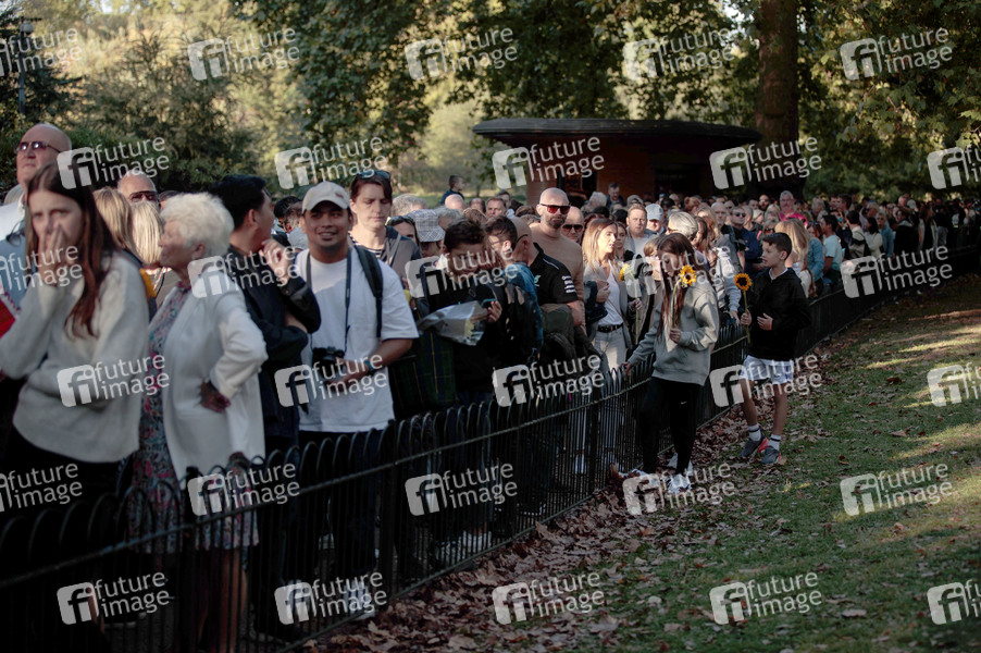 Schlangestehen, warten, Trauer, Anteilnahme, Tod von Königin Elisabeth II., Kondolenz, Kondolation, Beileidsbekundung, Monarchin, Abschied, Operation London Bridge