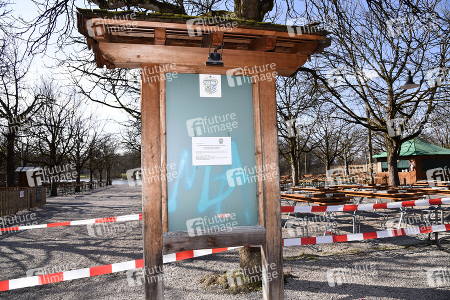 Schließung des Biergartens und des Spielplatzes im Michaeligarten. Nach zuletzt beschlossenen Schutzmaßnahmen gegen die Ausbreitung des Corona-Virus kommt das öffentliche Leben in München nahezu zum Erliegen. Betroffen sind fast alle Sehenswürdigkeiten, Museen, Plätze, Strassen, Restaurants, Biergärten, Universitäten u.v.m. München, 18.03.2020