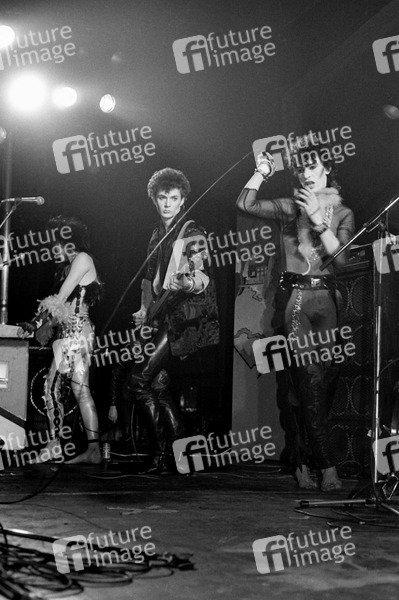 Jonny Slut, Kev Mills und Olli Wisdom von den Specimen live in der Brixton Academy. London, 10.04.1984