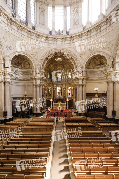 Im Berliner Dom wird der Festgottesdienst am Ostersonntag gefeiert. Durch die Kontaktbeschränkungen wegen Corona wird der Gottesdienst ohne Besucher abgehalten und im Internet gestreamt. Die Domprediger Petra Zimmermann, Michael Kösling, Thomas Müller und Maximilian Ilgner halten den Gottesdienst ab. Berlin, 12.04.2020