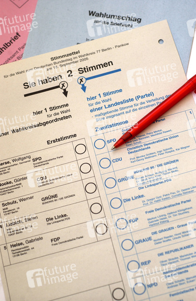 Stimmzettel für die Bundestagswahl am 18. Sept. 2005
