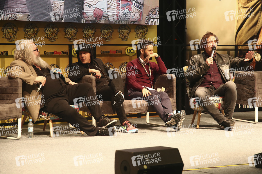 Mark Boone Jr., Theo Rossi, Moderator und Kim Coates auf der 6. German Comic Con Dortmund 2019 in der Messehalle. Dortmund, 07.12.2019