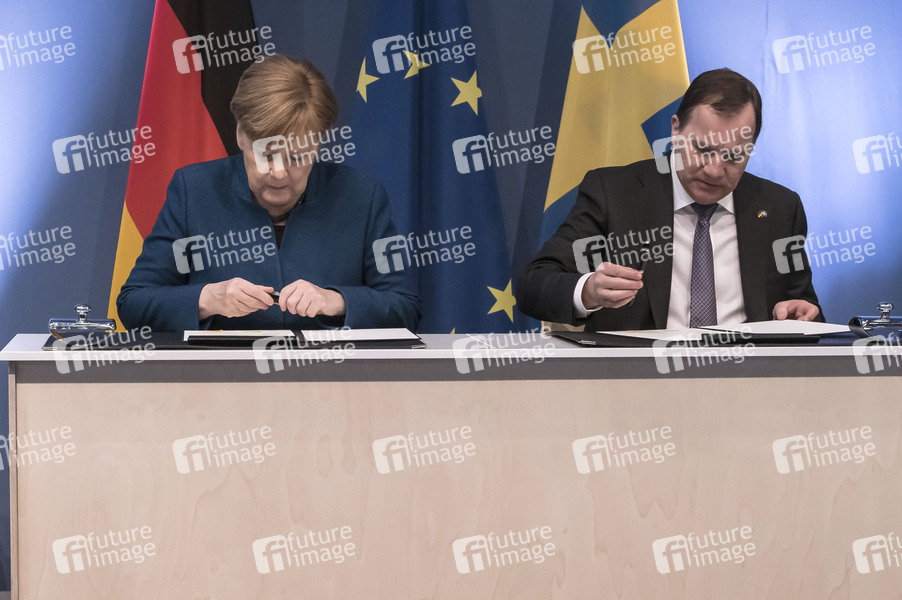 Politikerin, CDU, Bundeskanzlerin der Bundesrepublik Deutschland, Politiker, SAP, Ministerpräsident von Schweden, Industriemesse, Automatisierung, Industrie 4.0, Technologie, Wirtschaft, Ausstellung, Fair, Messe, Partnerland Mexiko, Eröffnung, Opening, Deutsche Messe AG, Eröffnungsrundgang, Highlight Tour, Hannover Messe Industrie 2019