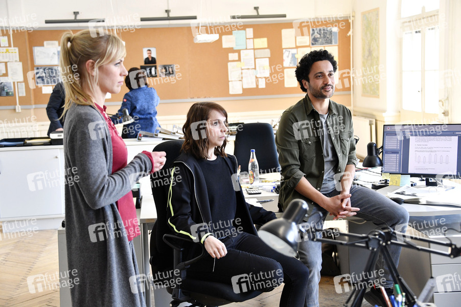 Katrin Jaehne, Caroline Erikson und Omar El-Saeidi beim Fototermin am Set der 2. Staffel der ZDF Serie 'Soko Potsdam' im Polizeipräsidium. Potsdam, 09.04.2019