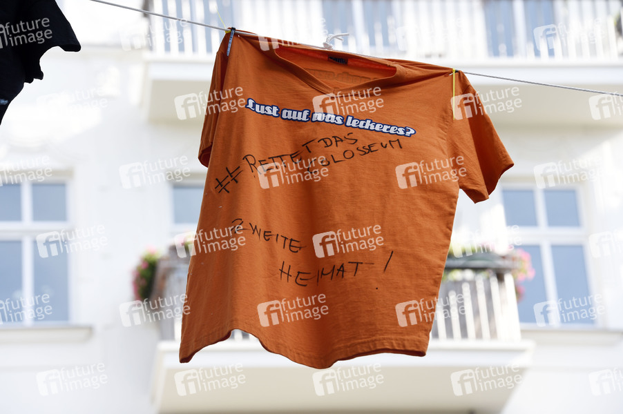 Protestaktion der Mitarbeiter gegen die geplante Schließung des Kinos Colosseum. Mit Aktionen wie dieser wollen die Mitarbeiter und Anwohner die Schließung verhindern. Ihrer Meinung nach wurde das Kino gezielt in den Ruin geführt. Die Betreiberfirma des Kinos hatte am 20. Mai Insolvenz angemeldet, begründet wurde das mit den Folgen der Coronakrise: Kinoverbot, ausbleibende Gäste, keine Einnahmen. Nun zeigt sich, dass wirtschaftliche Gründe infolge der ausbleibenden Einnahmen während der Corona-Krise nicht oder nur teilweise für die Schließung des geschichtsträchtigen Hauses verantwortlich sind. Finanzielle Corona-Unternehmenshilfen wurden nicht beantragt. Vielmehr haben sich Geschäftsführer Sammy Brauner und die Erbengemeinschaft des Nachlasses seines in 2019 verstorbenen Vaters Artur Brauner dazu entschlossen, das denkmalgeschützte Haus künftig nicht mehr als Kino fortzuführen. Vieles deutet darauf hin, dass Geschäftsführer Sammy Brauner und die Erbengemeinschaft Brauner andere, lukrativere Pläne für die Immobilie an dieser zentralen Stelle im Stadtteil Prenzlauer Berg verfolgen. Laut www.gleimviertel.de sei bereits im September 2019 ein Bauvorbescheid für das Grundstück Schönhauser Allee 123 beantragt worden. Inhalt des Bauvorhabens: Neubau und Überbauung des Grundstücks 'Colosseum' mit Büronutzung im Umfang von 15.960 m2 Gewerbefläche. Dieser Antrag sei positiv beschieden worden. Berlin, 21.06.2020