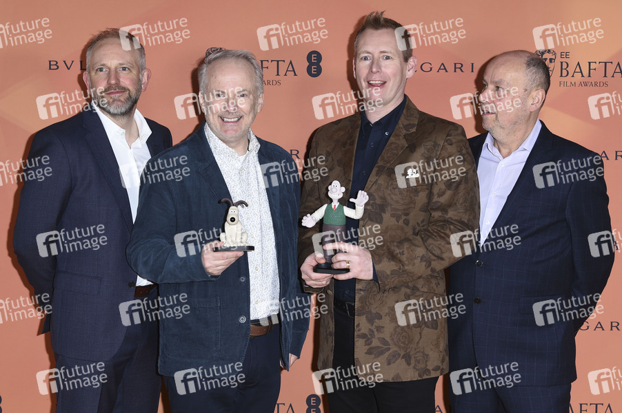 Richard Beek, Nick Park, Merlin Crossingham und Mark Burton bei der Nominierten-Party der BAFTA Film Awards 2025/ 78th British Academy Film Awards in der National Gallery. London, 15.02.2025