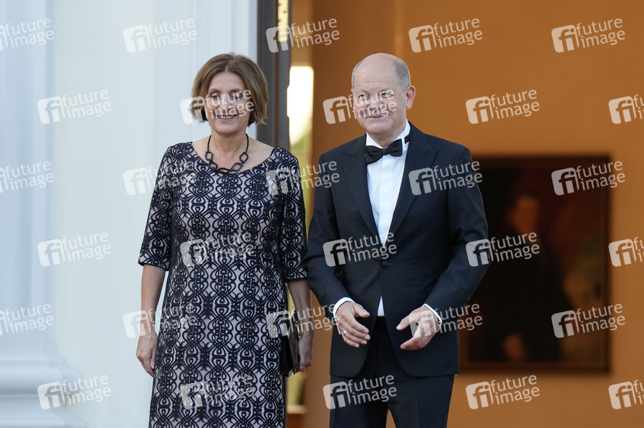Olaf Scholz mit Ehefrau Britta Ernst bei der Ankunft zum Staatsbankett zu Ehren des Staatspräsidenten der Französischen Republik im Schloss Bellevue. Berlin, 26.05.2024
