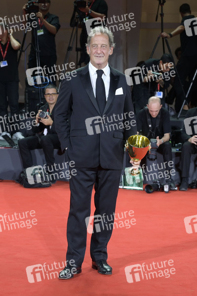 Vincent Lindon mit dem Coppa Volpi für den besten Darsteller in 'Jouer avec le feu' bei der Preisverleihung der Biennale di Venezia 2024 / 81. Internationale Filmfestspiele von Venedig im Palazzo del Cinema. Venedig, 07.09.2024