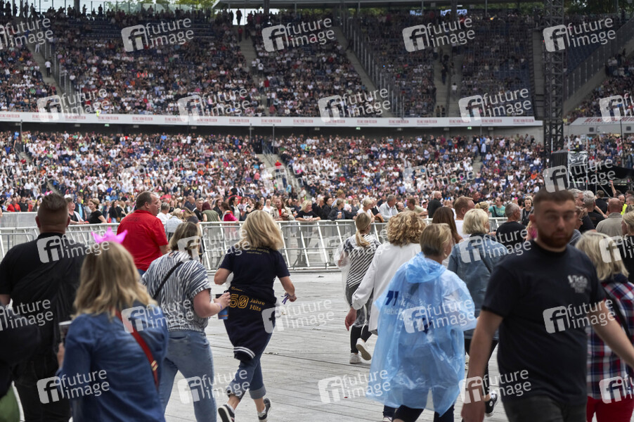 Aufgrund von Unwetterwarnungen wurde der Stadioninnenraum der Heinz von Heiden Arena vor dem Konzert von Roland Kaiser für ca.45 min evakuiert. Hannover, 21.06.2024