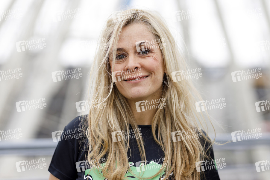 Tanja Lanäus beim Fototermin zur sportichen '#WocheChallenge' im Deutschen Sport & Olympia Museum. Unter dem Motto 'Wir können was bewegen!' ruft die Welthungerhilfe zu dieser Challenge auf und bittet um Spenden für eine Welt ohne Hunger. Köln, 07.10.2020