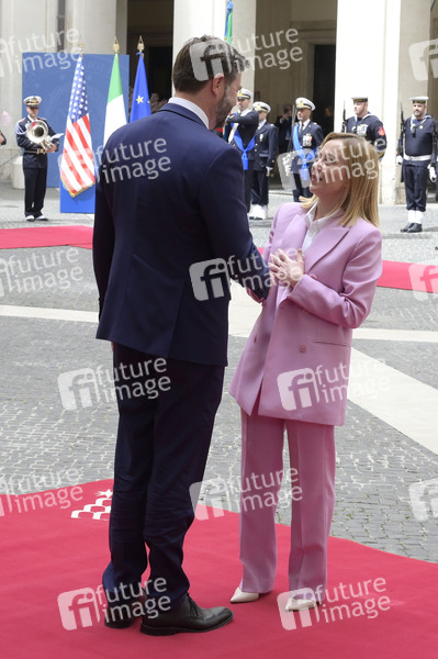 JD Vance und Giorgia Meloni beim Empfang des US-Vizepräsidenten im Palazzo Chigi. Rom, 18.04.2025