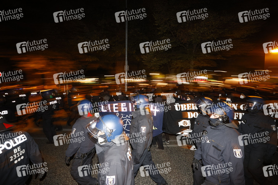 Demonstration gegen Räumung vom Wagencamp 'Köpi' von der Rigaer Straße zum Gelände des Camps an der Köpenicker Straße. Berlin, 09.10.2021
