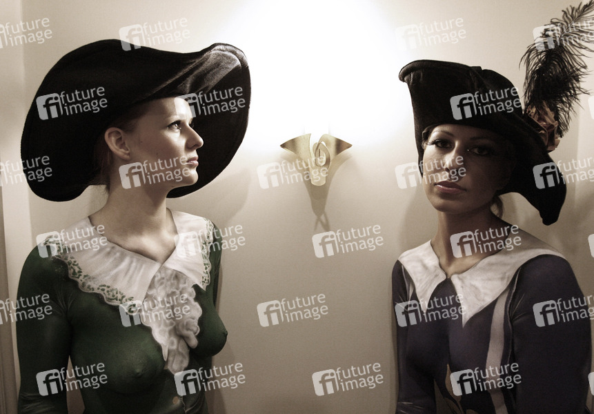 Photoshooting mit den Models Anne und Jeannie im Schlosshotel Münchhausen in Aerzen bei Hameln. Bodypainting-Künstler: Jörg Düsterwald