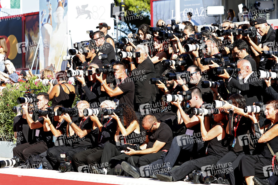 Prominenz, Celebrity, Celebrities, Filmpremiere, Premiere, Roter Teppich, Ankunft, Unterhaltung, Entertainment, Kultur, Kino, Film, Filmfest, Filmfestival, 82. Mostra Internazionale d'Arte Cinematografica di Venezia, The 82nd Venice International Film Festival, Presse, Pressefotografen