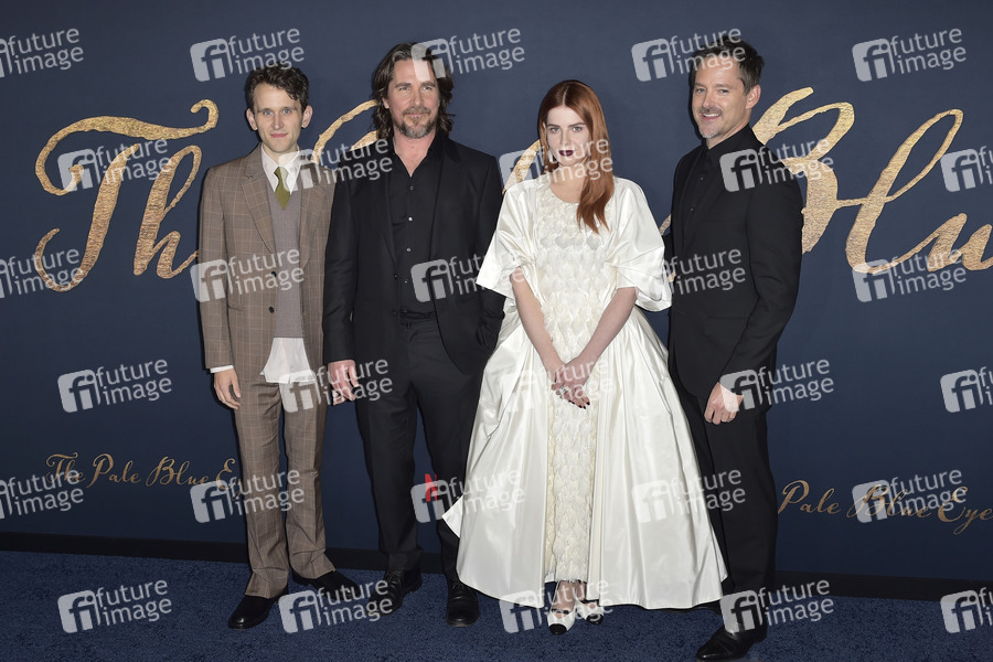 Harry Melling, Christian Bale, Lucy Boynton und Scott Cooper bei der Premiere des Kinofilms 'The Pale Blue Eye / Der denkwürdige Fall des Mr Poe' im DGA Theater Complex. Los Angeles, 14.12.2022