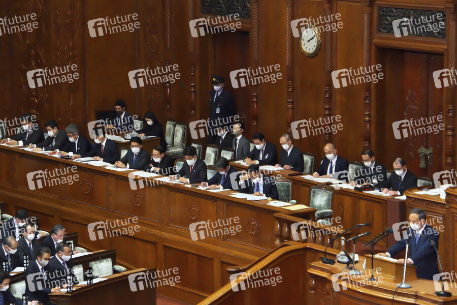 Yoshihide Suga bei der 203. Diäten-Sitzung im Unterhaus des Parlaments. Tokio, 26.10.2020