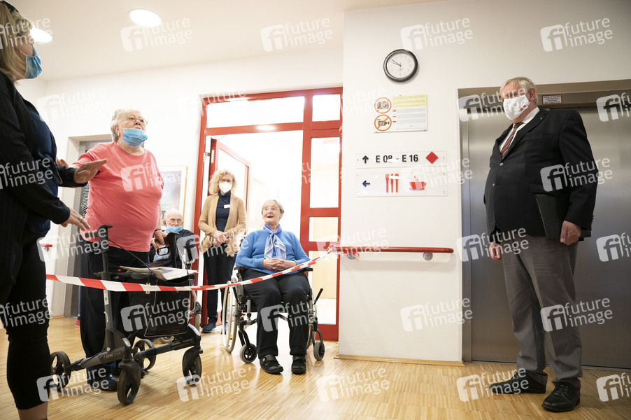 NRW-Gesundheitsminister Karl-Josef Laumann besucht das Caritas-Pflegeheim 'Wohnhaus Zur heiligen Familie' in Heerdt. Düsseldorf, 13.05.2020