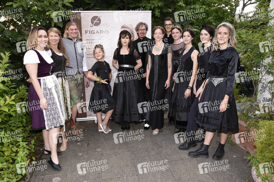 Jekaterina Krasnostanova, Michaela Keune, Dirk Eichfeld-Kilian, Anja Kruse und Stefan von Heyden mit Models bei der privaten Gartenmodenschau 'Family & Friends' von Michaela Keune. Pullach, 19.07.2020