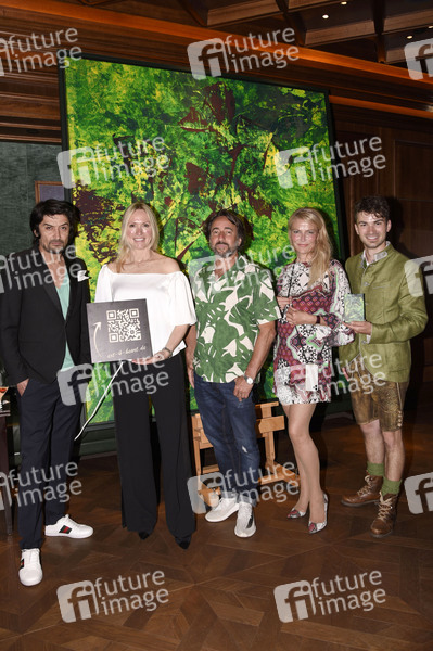 Adrian Can, Simone von Anhalt, Dieter Landuris, Ursula Gottwald und Andreas Hastreiter bei der Benefiz Kunstauktion in der Jahreszeiten Bar im Hotel Vier Jahreszeiten Kempinski. München, 01.07.2021