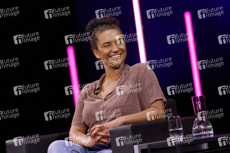 Farah Schäfer bei der lit.Cologne Veranstaltung 'lit.ComingOfAge: Utopia vs. Dystopia - Wie blickt die Generation Z in die Zukunft? Ein Gedankenexperiment' als Stream aus dem Theater am Tanzbrunnen. Die lit.Cologne 2021 findet wegen der Corona-Pandemie als digitales Event mit Streams statt. Köln, 05.06.2021