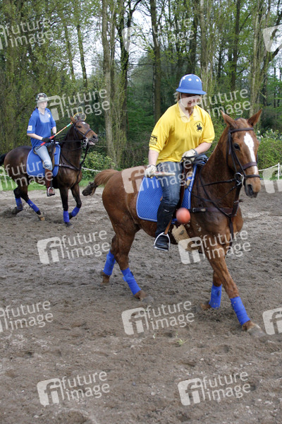 Sportlerinnen, Reiterinnen, Tiere, Pferde, Polocrosse ist eine Kombination von Polo und Lacrosse