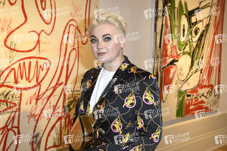 Ela Steinmetz bei der Eröffnung der Alexander Höller Ausstellung 'F*CK THEM' in der Galerie Schmalfuss. Berlin, 19.08.2021