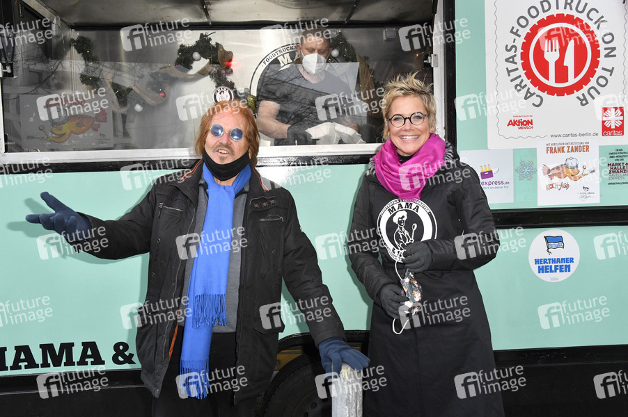 Frank Zander und Inka Bause verteilen Essen und Geschenke aus dem Food Truck an Obdachlose und Bedürftige. Berlin, 16.12.2020
