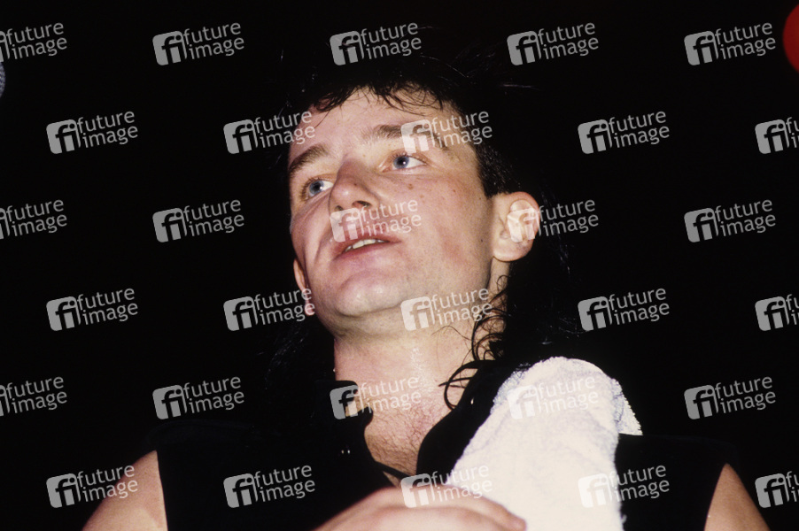 Bono von U2 live bei einem Konzert der 'The Unforgettable Fire'-Tour in der Wembley Arena. London, 14.11.1984