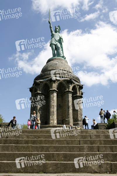 soll an den Cheruskerfürsten Arminius (Lateinisch, in deutsch: Hermann) erinnern, Gesanthöhe 53.46 m, Sandsteinunterbau 26.89m, Figur 26.57 m, besteht aus einer Eisenrohrkonstruktion mit Oberfläche aus Kupferplatten, Erbauer Ernst von Bandel, Baubeginn 1838, nach der Revolution von 1848 ruhte der Bau bis 1863, festliche Einweihung 1875