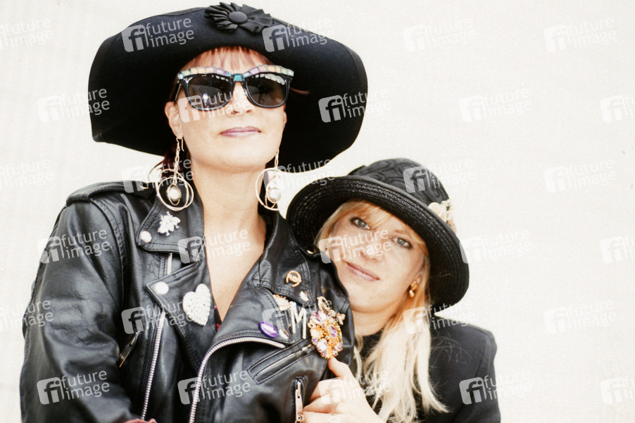 Melissa Brooke Belland und Tracey Bryn von Voice of the Beehive bei einem Photoshooting auf dem Dach von Ploydor Records. London, 12.08.1988