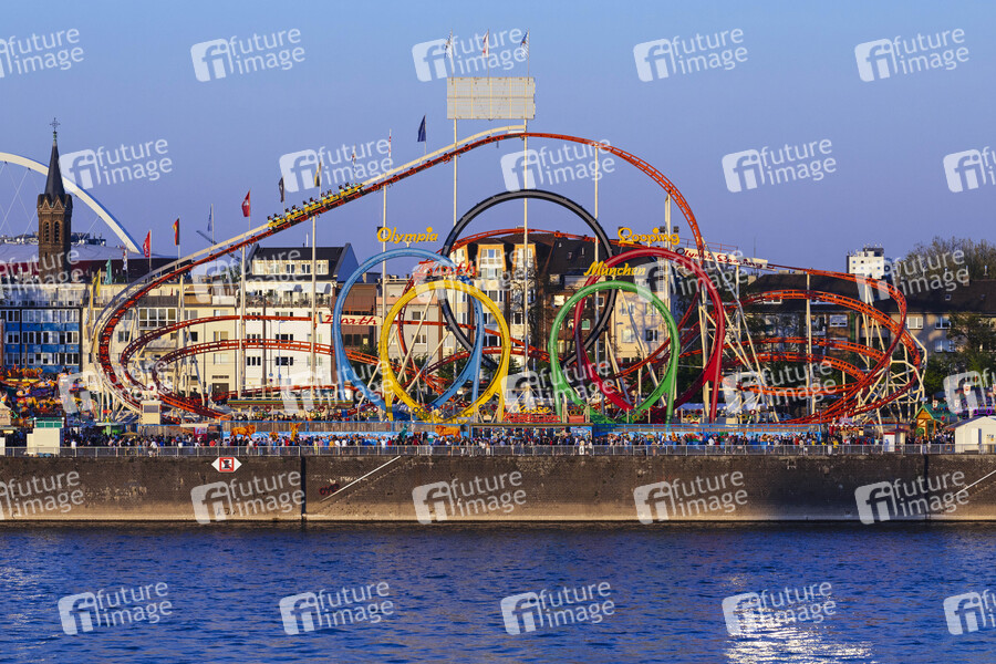 Kirmes, Lichter, Freizeit, Rummel, Volksfest, Unterhaltung, Rummelplatz, Jahrmarkt, Fahrgeschäft, Vergnügen, Looping, Vergnügung, Vergnügungsfahrgeschäft, Vergnügungssteuer, Achterbahn, Rollercoaster, Frühlingsfest, Fahrgeschäft, Fliehkräfte, Fliehkraft, Karussell, Riesenrad, Fliehkräfte, G-Kräfte, G-Force, Höhenangst, Beschleunigung, Fliehkraft, Rheinufer, Symbolbild, Symbolfoto