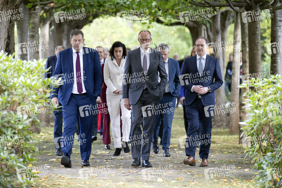 Lars Klingbeil, Friedrich Merz, Alexander Dobrindt und die Bundesregierung bei der 17. Kabinettssitzung der Bundesregierung in der Borsig-Villa Reiherwerder. Berlin, 30.09.2025