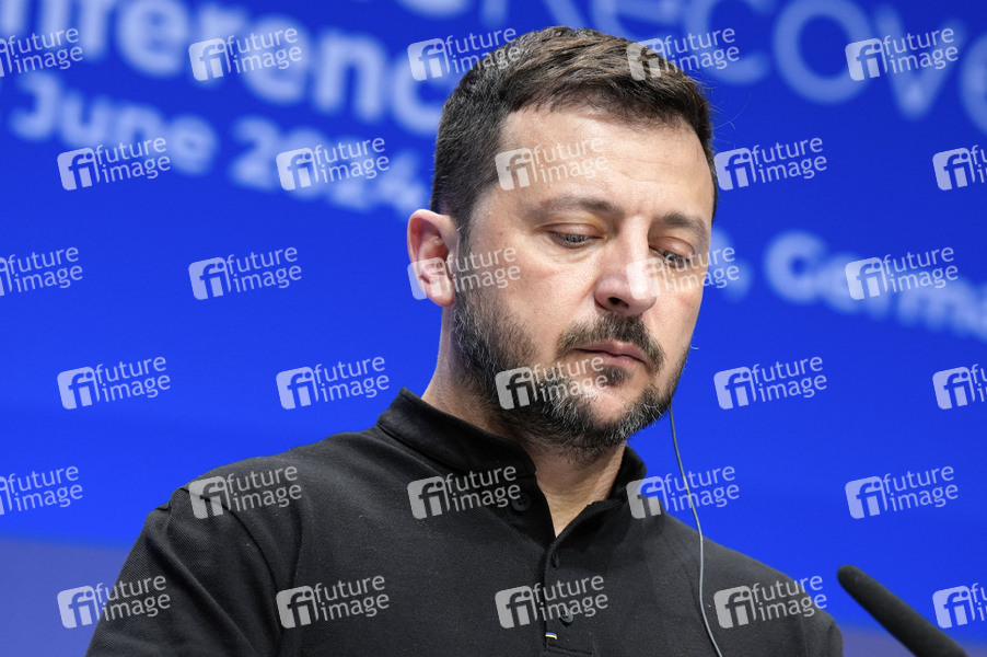Wolodymyr Selenskyj bei der Pressekonferenz zur Ukraine Recovery Conference 2024 unter dem Motto 'United in Defense. United in Recovery. Stronger together.', auf dem Messegelände. Berlin, 11.06.2024