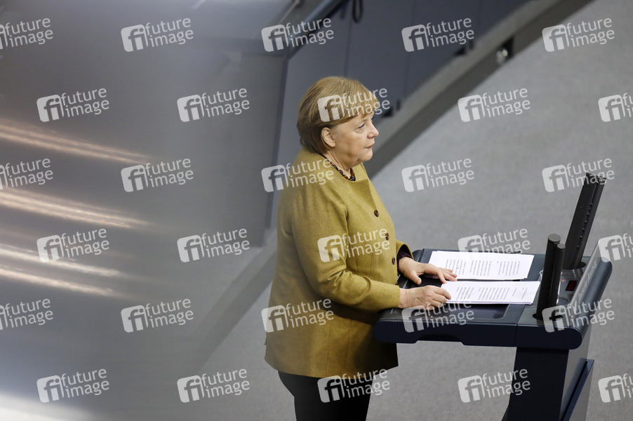Angela Merkel in der 209. Sitzung des Deutschen Bundestages im Reichstagsgebäude. Berlin, 11.02.2021