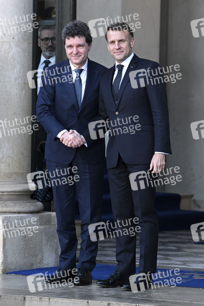 Nicusor Dan und Emmanuel Macron beim Treffen der Koaltion der Willigen zu Beratung über die militärische Unterstützung für die Ukraine im Élysée-Palast. Paris, 06.01.2026