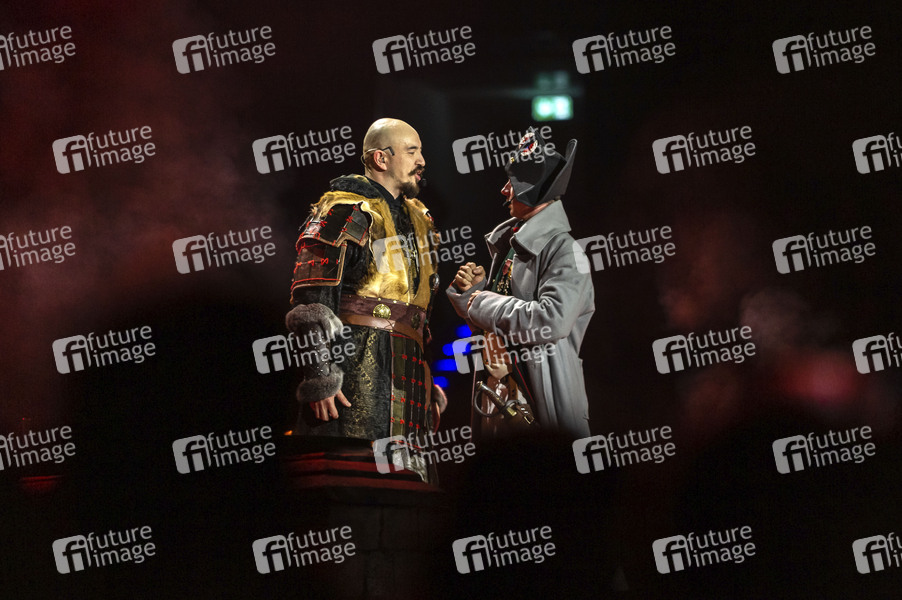 Sabaton live bei einem Konzert der 'The Legendary Tour' in der ZAG Arena. Hannover, 08.12.2025