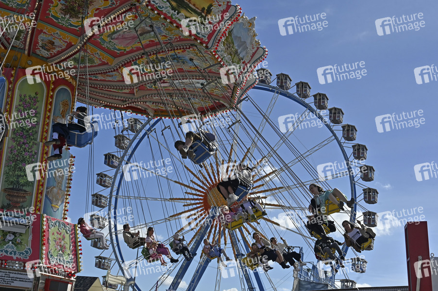 Kettenkarussell und Willenborgs Riesenrad beim 189. Oktoberfest 2024 auf der Theresienwiese. München, 29.09.2024