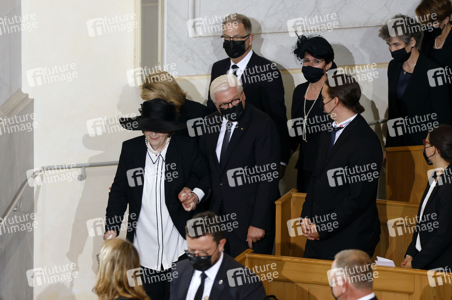 Frank-Walter Steinmeier mit Ingrid Biedenkopf beim Trauerstaatsakt zu Ehren des verstorbenen früheren Ministerpräsidenten Kurt Biedenkopf in der Frauenkirche Dresden. Dresden, 03.09.2021