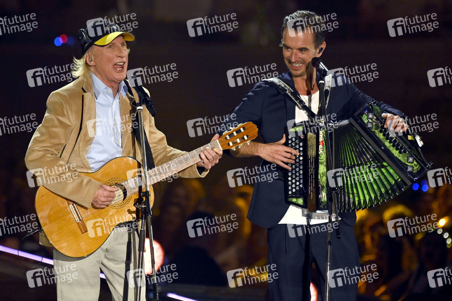 Otto Waalkes und Florian Silbereisen in der TV Show 'Schlagerbooom 2021 - Alles funkelt! Alles glitzert!' in der Dortmunder Westfalenhalle. Dortmund, 23.10.2021