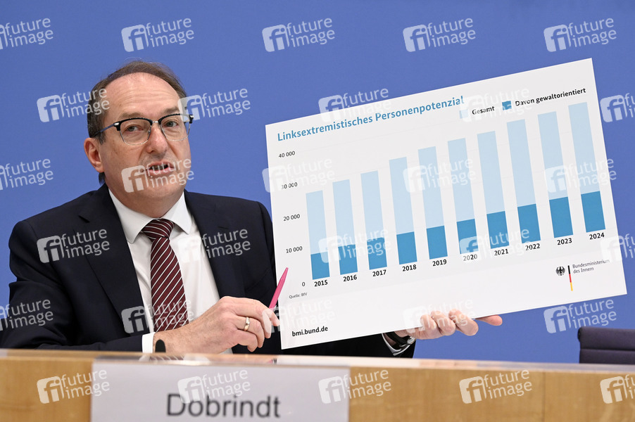 Alexander Dobrindt bei der Bundespressekonferenz 'Vorstellung des Verfassungsschutzberichtes 2024' im Haus der Bundespressekonferenz. Berlin, 10.06.2025