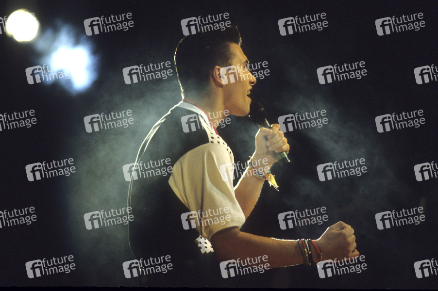 Nathan Moore von Brother Beyond live bei einem Konzert der 'The Get Even'-Tour in der Royal Albert Hall. London, 20.03.1989