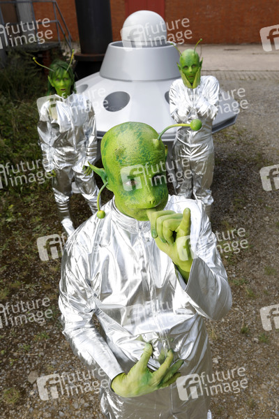Bodypainting, Body-Painting, Cosplay, Cosplayer, Körperkunst, Körperfarben, Farbe, Bemalung, Kunst, Make-up, Latexapplikationen, Maskenbildnerei, unbekanntes Flugobjekt, Außerirdische, fliegende Untertasse, Raumschiff, fremde Wesen, Landung, Invasion, Science Fiction, body painting, body art, latex applications, unknown flying object, spacecraft, flying saucer, alien, strangers, landing, colors