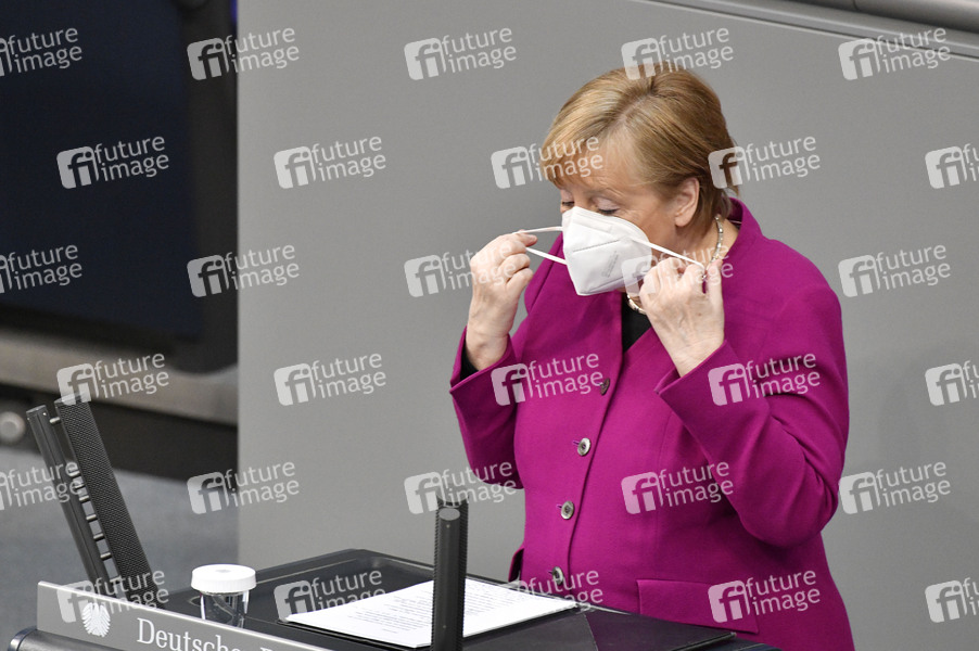 Angela Merkel in der 218. Sitzung des Deutschen Bundestages im Reichstagsgebäude. Berlin, 25.03.2021