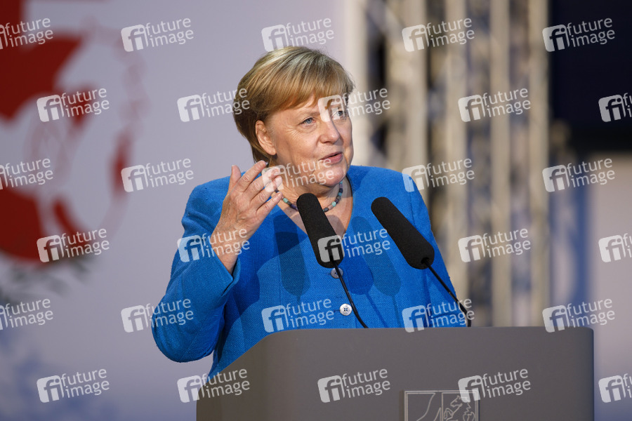 Angela Merkel beim Festakt zum 75. Geburtstag des Landes Nordrhein-Westfalen auf der Düsseldorfer Galopprennbahn. Düsseldorf, 23.08.2021