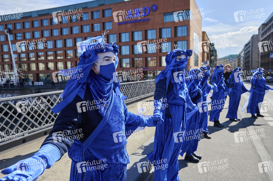 Klimaaktivisten von Extinction Rebellion protestieren in Berlin-Mitte zum Weltwassertag gegen eine zunehmende Verseuchung des Trinkwasser u.a. durch Fracking und gegen eine durch Großkonzerne erzeugte Wasserknappheit. Berlin, 22.03.2021