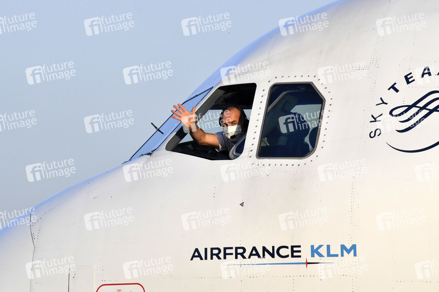 Air-France-Pilot Christophe Ruch startet das allerletzte Flugzeug vom TXL. Mit der Inbetriebnahme des Flughafens Berlin Brandenburg Willy Brandt (BER) wird der gesamte Luftverkehr der Hauptstadtregion an einem Standort konzentriert. Der Flughafen Tegel, kurz TXL, schließt am 8. November. 60 Jahre nach dem ersten Linienflug von Air France wird am 8. November ein Flugzeug der französischen Airline zum allerletzten Mal von dem Flughafen im Nordosten Berlins starten und Adieu sagen. Berlin, 08.11.2020