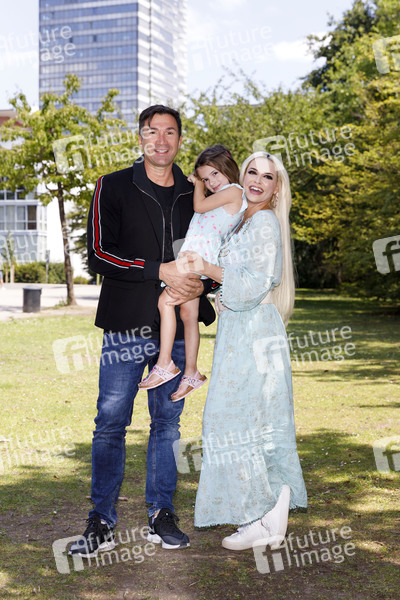 Daniela Katzenberger mit Ehemann Lucas Cordalis und Tochter Sophia beim Fototermin zur der Präsentation ihres neuen Buches 'Die Mutti-Mafia - kann mich mal... gernhaben' auf dem Spielplatz Mediapark. Köln, 13.07.202