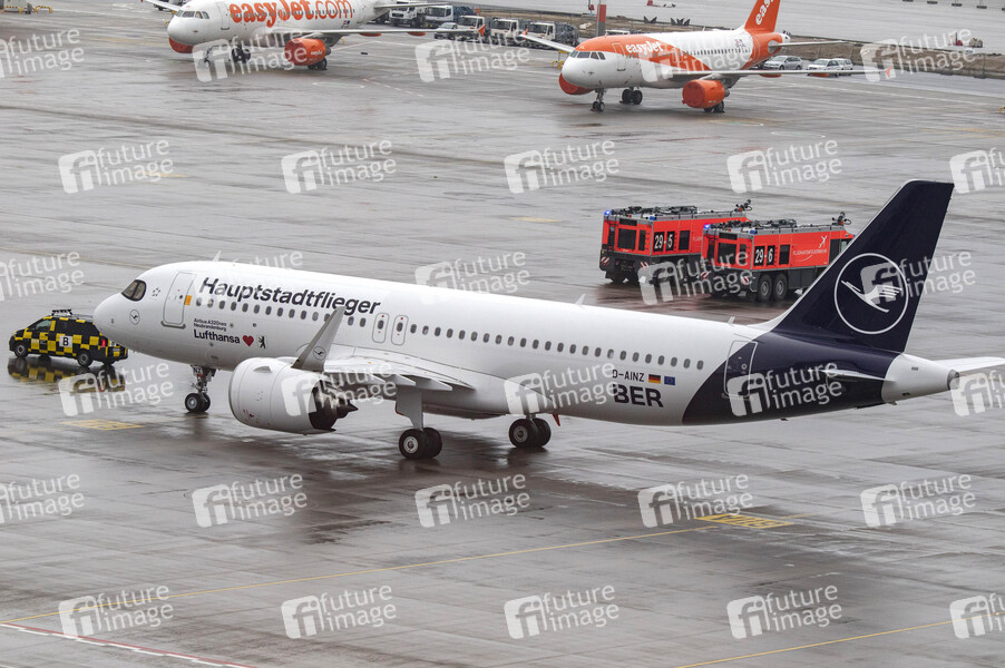 Hauptstadtflieger, Airbus A320-251N mit Flugnummer Easyjet U23110, Airbus A320-271N mit Flugnummer LH 2020, BER, Airbus, Airlines, Airways, Arbeitsplätze, Auslandsflug, Baustelle, Berlin Airport, Billig-Flieger, Billigflieger, Billigfluglinie, Bus-Anschluss, Busanschluss, Business Class, BVG, Check-In, Departure, Drehkreuz, Economy, Eröffnung, Eröffnungstermin, Export, Ferienbeginn, Ferienflieger, Ferienstart, First, Fliegen, Flug, Flugaufkommen, Flugbegleiter, Flüge, Fluggast, Fluggastaufkommen, Fluggäste, Fluggesellschaft, Flughafen Berlin Brandenburg Willy Brandt, Flughafengelände, Flughafengesellschaft FBB, Fluglinie, Flugpassagiere, Flugplan, Flugreise, Flugreisende, Flugschalter, Flugverkehr, Flugzeuge, Gepäck, Gepäckaufgabe, Geschichte, Handgepäck, Hauptstadtflughafen, Inbetriebnahme, Inlandsflug, Kerosin, Landeanflug, Landebahn, Langzeitbaustelle, Last Minute, Logistik, Luftfahrt, Luftverkehr, Nordbahn, Passagiere, Reise, Reisen, Reiserücktrittsversicherung, Reisezeit, S-Bahn-Anschluss, Südbahn, Südostregion, Terminal, Ticketpreise, Tourismus, Tower, Urlaub, Verkehrsflughafen, Verkehrsmittel, Symbolbild, Symbolfoto