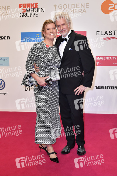 Frank Schätzing mit Ehfrau Sabina Valkieser-Schätzing bei der 54. Verleihung der Goldenen Kamera 2019 im Flughafen Tempelhof. Berlin, 30.03.2019